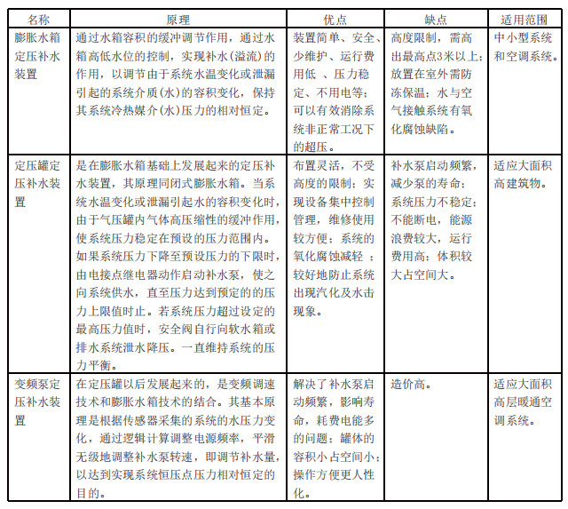 定压补水常见三种补水装置:1、膨胀水箱定压补水装置;2、定压罐定压补水装置;3、变频泵定压补水装置。