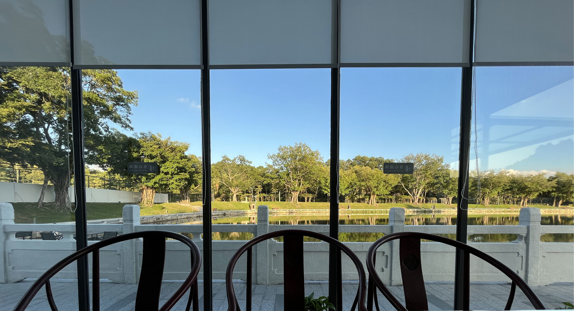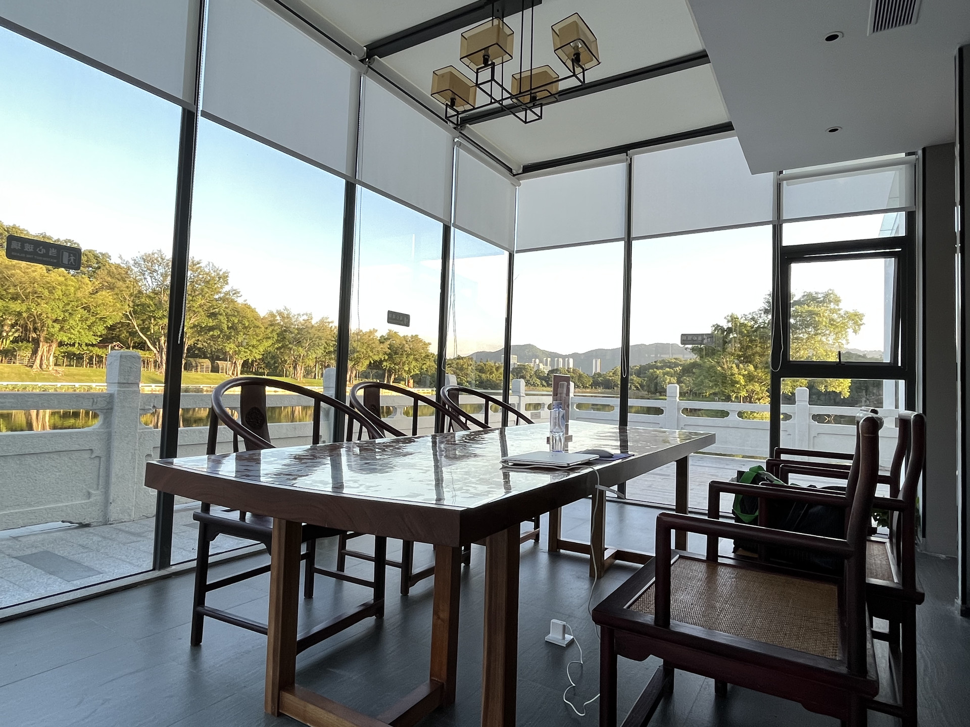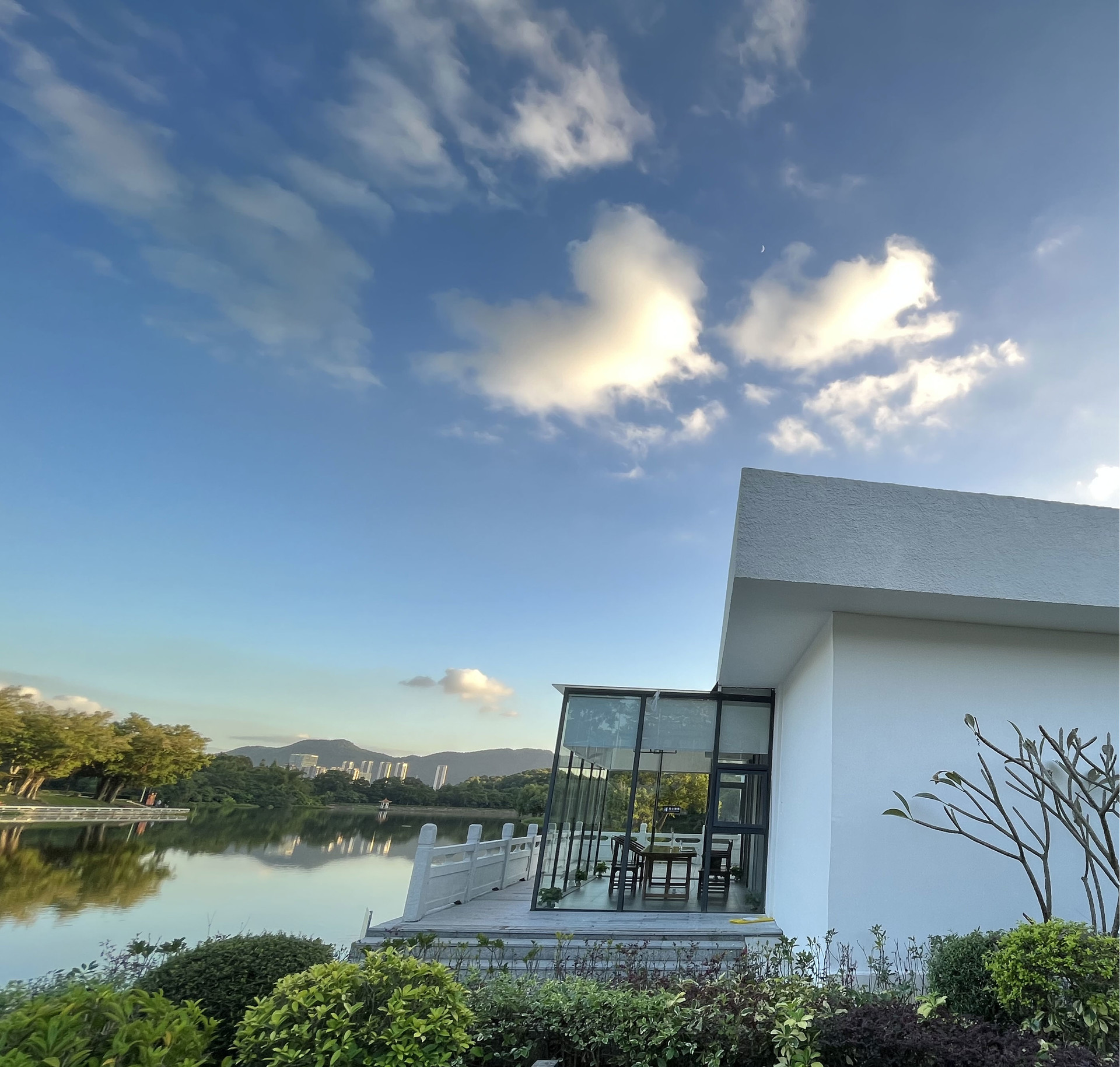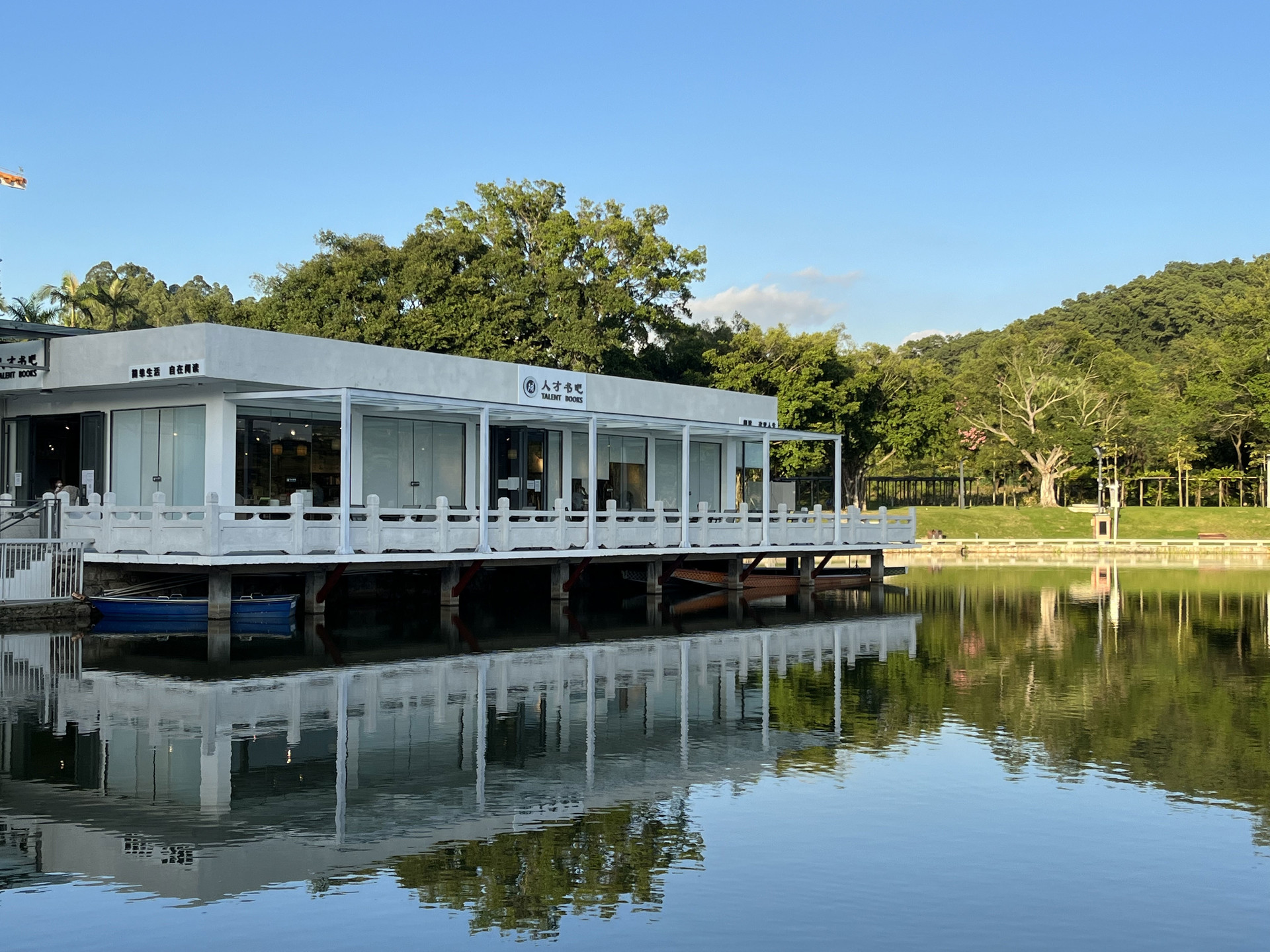 麒麟山庄人才书吧位于深圳人才研修院内,背靠麒麟山,面朝天鹅湖,环境清幽,风景秀丽,是书斋建造的理想之地。整个书斋被水系包围,就像是悬浮在水面上,赋予其生命和自然的力量,也符合文人对书斋的环境需求。