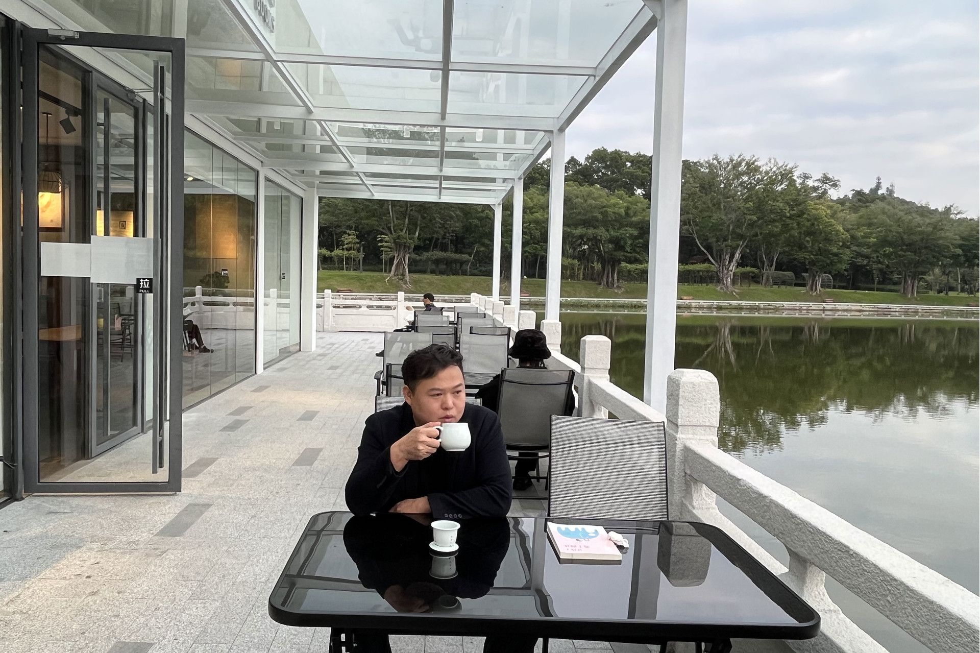 建筑南部长露台之上,搭建玻璃雨棚,设置些许户外桌椅,形成临湖阅读区。该区域悬浮于天鹅湖之上,三面环水,一张桌、一把椅、一本书、一壶茶,即可静坐感受微风拂面的温柔。当阳光照射在湖泊上,波光粼粼的光影变化跃然眼前,当雨水滴落在湖面上时亦能看到片片涟漪,颇具雅趣。